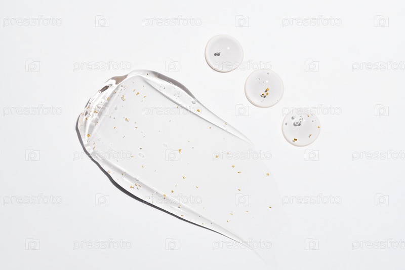 Мазки и капли с косметикой по уходу за кожей - гиалуроновая гелевая сыворотка из 24-каратного золота и капли жидкости. Косметический фон