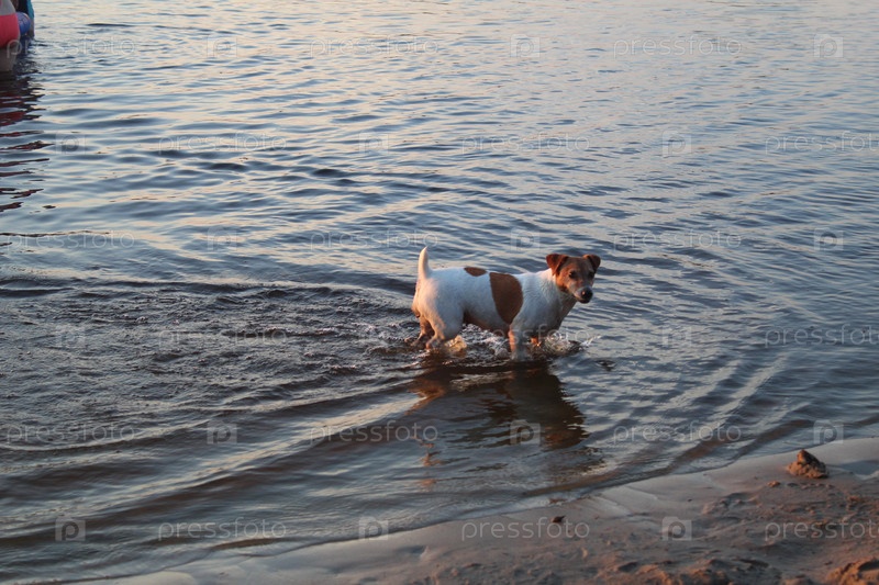 На берегу озера плавает собака породы джек-рассел. Как купаются животные