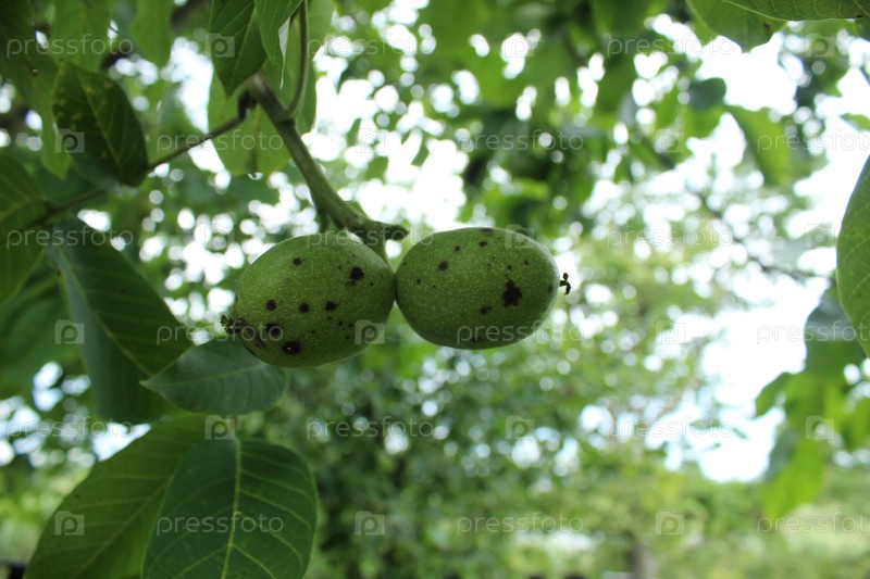 Плоды грецкого ореха зеленые с черными крапинками. болезни деревьев, плодов, орехов