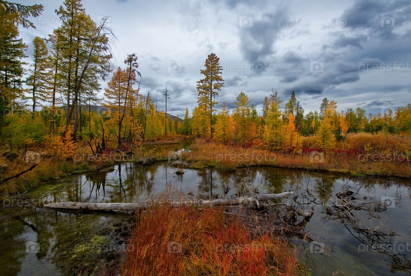 Россия. Дальний Восток, Магаданская область. Удивительная своими красками осень на берегу озера Макси