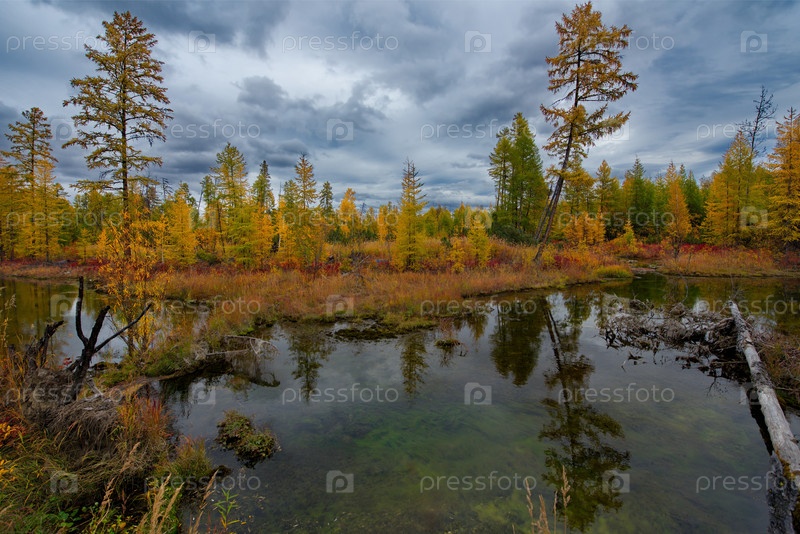 Россия. Дальний Восток, Магаданская область. Удивительная своими красками осень на берегу озера Макси