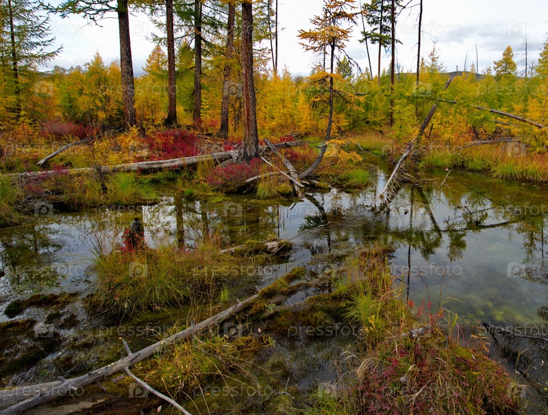 Россия. Дальний Восток, Магаданская область. Удивительная своими красками осень на берегу озера Макси