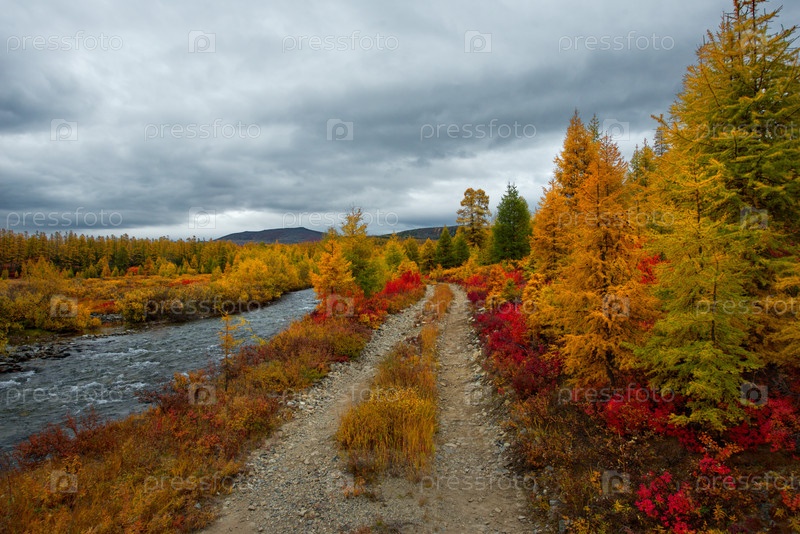 Россия. Дальний Восток, Магаданская область. Удивительная своими красками осень на берегу озера Макси