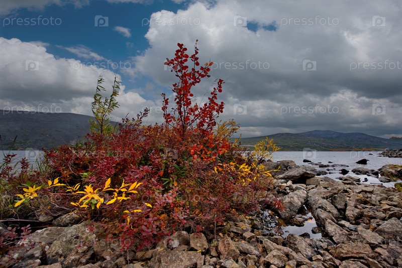 Россия. Дальний Восток, Магаданская область. Удивительная своими красками осень на берегу озера Макси