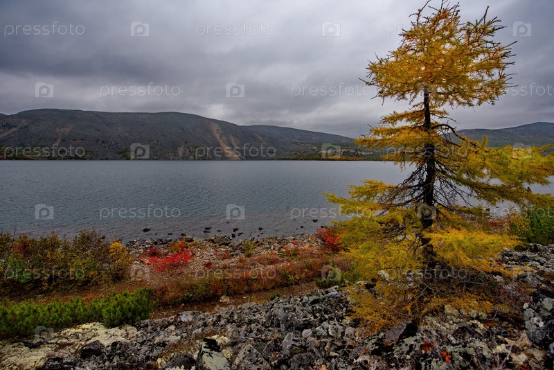 Россия. Дальний Восток, Магаданская область. Удивительная своими красками осень на берегу озера Макси