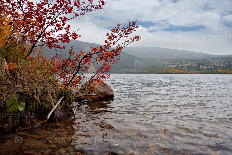 Россия. Дальний Восток, Магаданская область. Удивительная своими красками осень на берегу озера Макси
