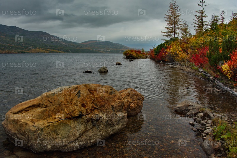 Россия. Дальний Восток, Магаданская область. Удивительная своими красками осень на берегу озера Макси
