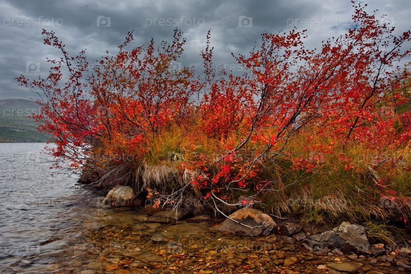 Россия. Дальний Восток, Магаданская область. Удивительная своими красками осень на берегу озера Макси