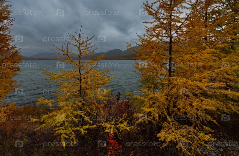 Россия. Дальний Восток, Магаданская область. Удивительная своими красками осень на берегу озера Макси