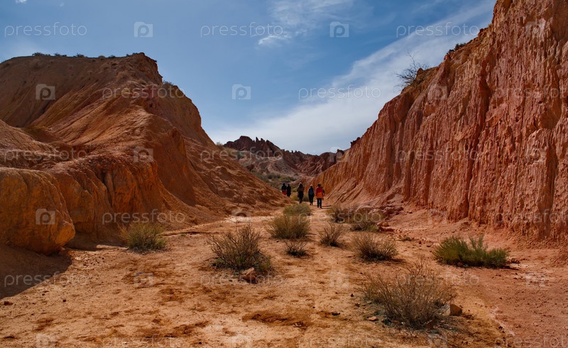 Северный Кыргызстан. Живописные виды на знаменитый каньон Сказка, глинистые горные вершины которого окрашены в яркие цвета от желтого до красно-коричневого