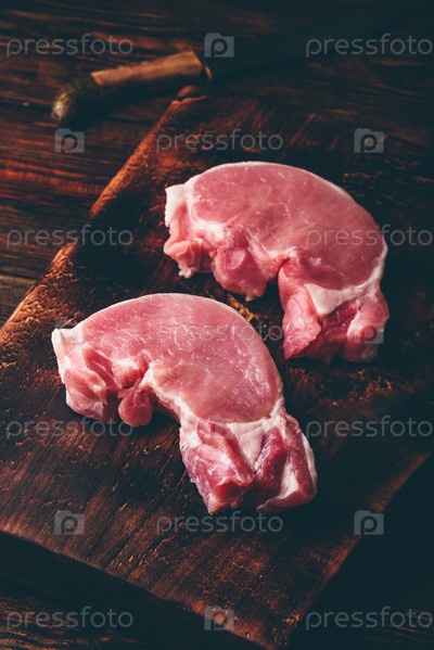 Два стейка из свиной корейки с ножом