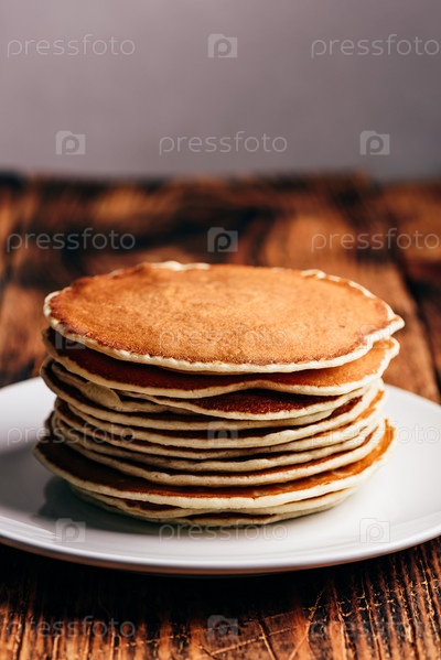 Стопка американских блинов на белой тарелке