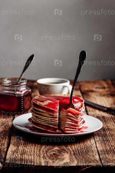 Стопка блинов с ягодно-фруктовым мармеладом