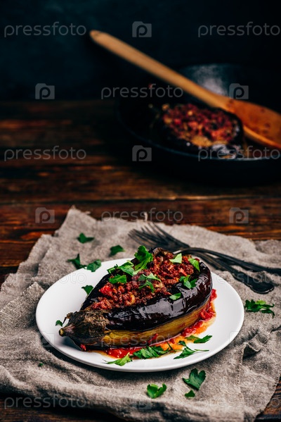 Баклажаны, фаршированные говяжьим фаршем и помидорами