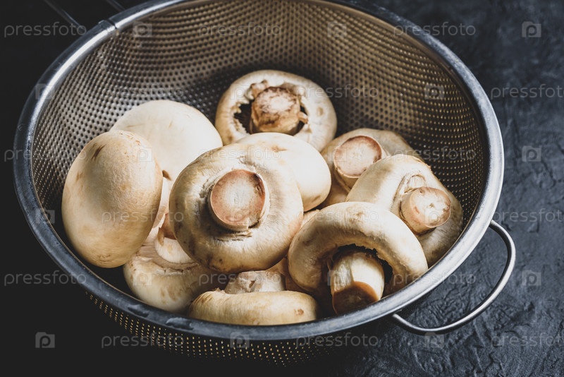 Шампиньоны в металлическом дуршлаге