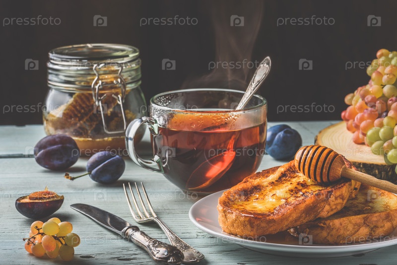 Французские тосты с медом, фруктами и чаем