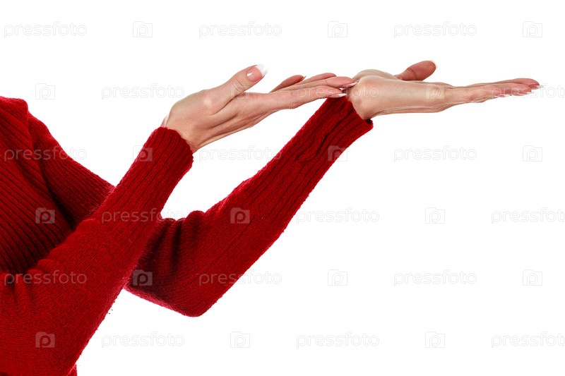 Крупный план женских рук, представляющих что-то, изолированное на белом фоне