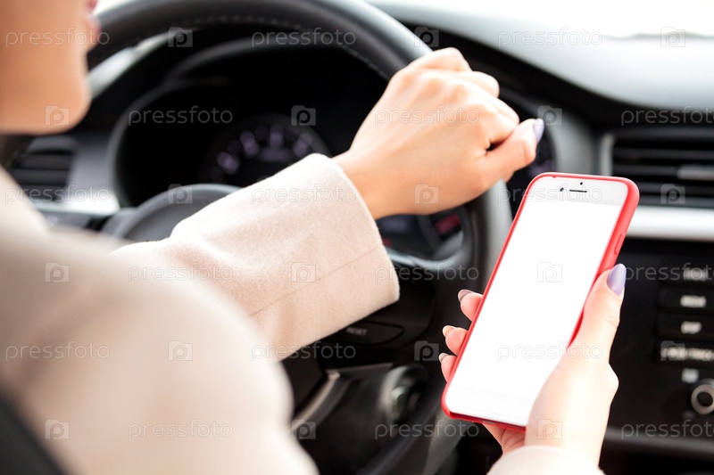 Крупным планом снимок женщины-водителя со смартфоном или навигационным устройством