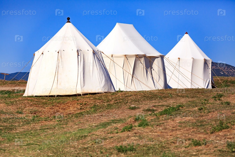 Три палатки под голубым небом