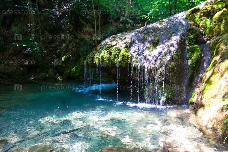Красивый водопад в глубоком лесу