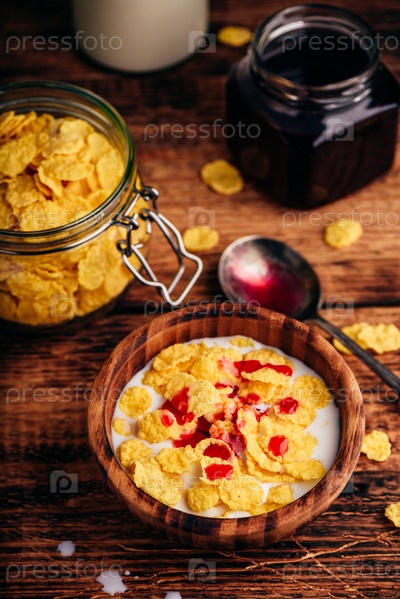 Завтрак с кукурузными хлопьями и молоком