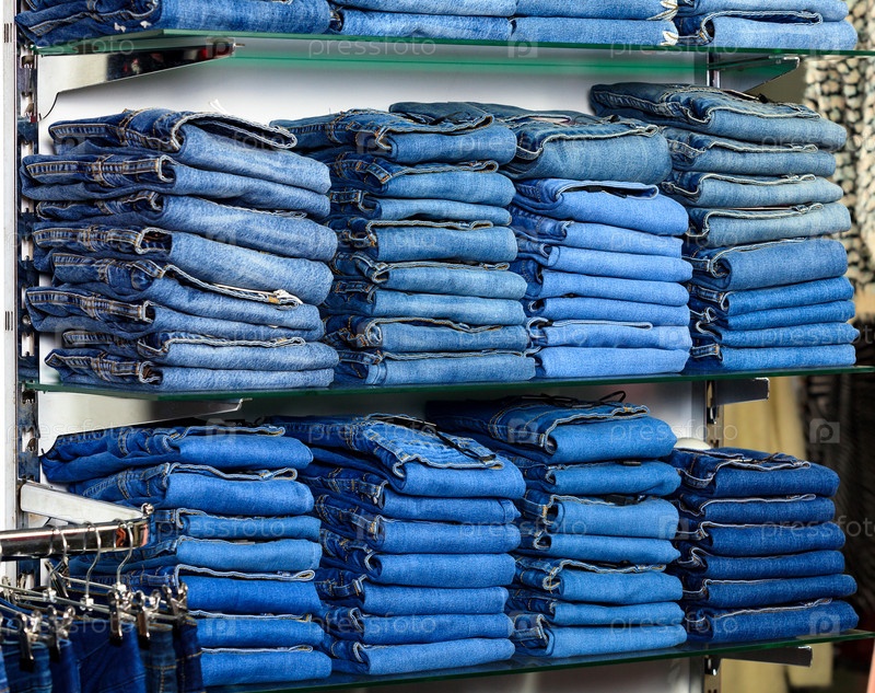 Крупным планом стопка сложенных джинсов в магазине модной одежды