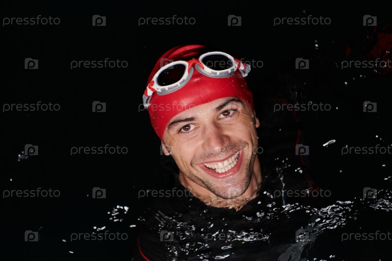 Настоящий пловец-триатлет, отдыхающий во время тяжелой тренировки ночью