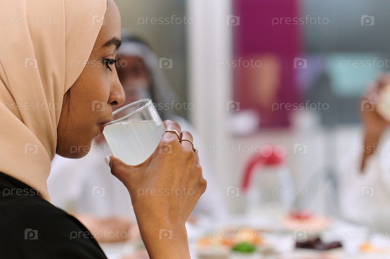 Традиционная и разнообразная мусульманская семья собирается вместе, чтобы разделить вкусный ифтар во время священного месяца Рамадан, воплощая суть семейной радости, культурного богатства и духовного единства в их общем празднике