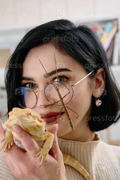 Уомн и ее питомцы: бородатый дракон и палочник