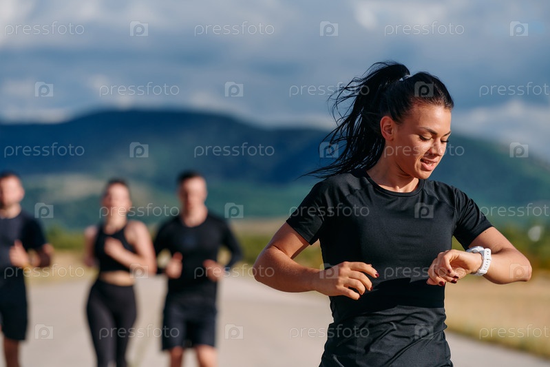 Лидер направляет спортсменов на забег в солнечный день