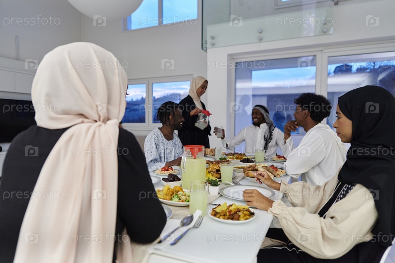 В священный месяц Рамадан мусульманская семья радостно собирается за столом, с нетерпением ожидая общего ифтара, занимаясь приготовлением общей трапезы и объединяясь в ожидании коллективной молитвы, воплощая дух единения, преданности и культурный праздник
