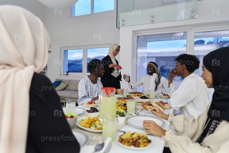 В священный месяц Рамадан мусульманская семья радостно собирается за столом, с нетерпением ожидая общего ифтара, занимаясь приготовлением общей трапезы и объединяясь в ожидании коллективной молитвы, воплощая дух единения, преданности и культурный праздник
