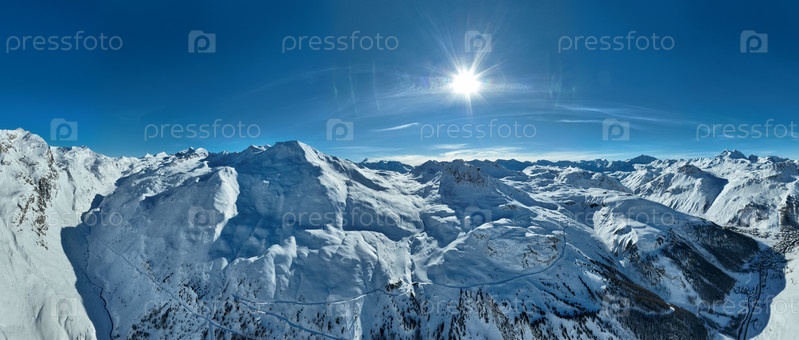 Зимний снимок лыжных трасс и склонов, покрытых свежим снегом, с дрона в Тине, Валдизер, Франция