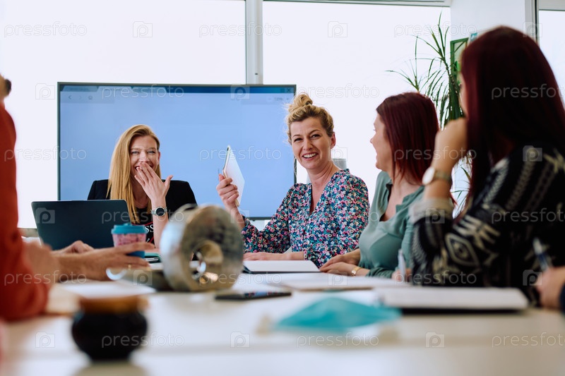 Разнообразная бизнес-команда обсуждает проекты в современном стеклянном офисе