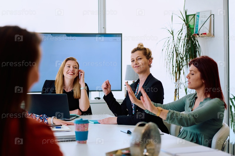 Разнообразная бизнес-команда обсуждает проекты в современном стеклянном офисе