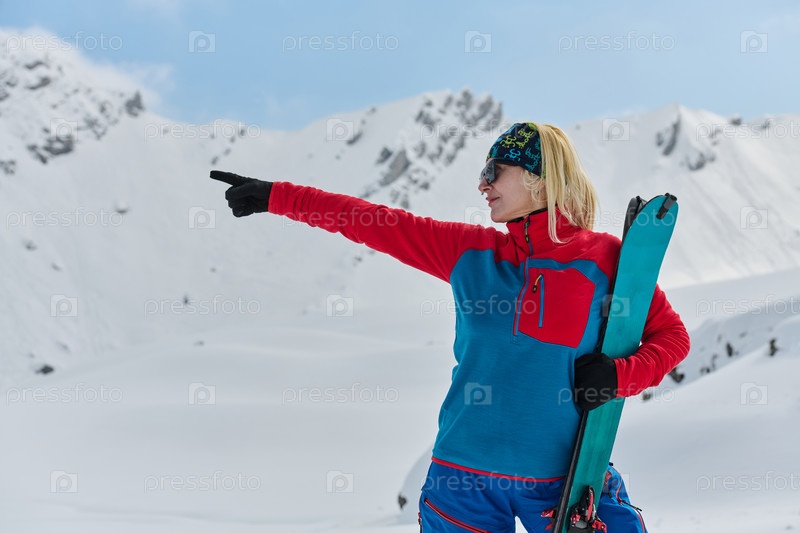 Профессиональная лыжница радуется успешному восхождению на заснеженные вершины Альп