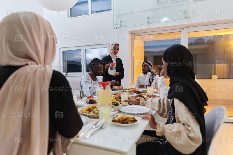 В священный месяц Рамадан мусульманская семья радостно собирается за столом, с нетерпением ожидая общего ифтара, занимаясь приготовлением общей трапезы и объединяясь в ожидании коллективной молитвы, воплощая дух единения, преданности и культурный праздник