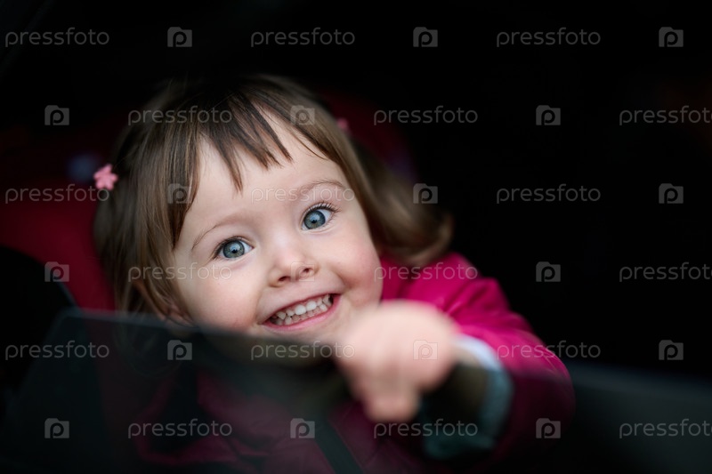 Молодая девушка удобно сидит в современном автокресле, надежно закреплена и готова к семейным приключениям в дороге