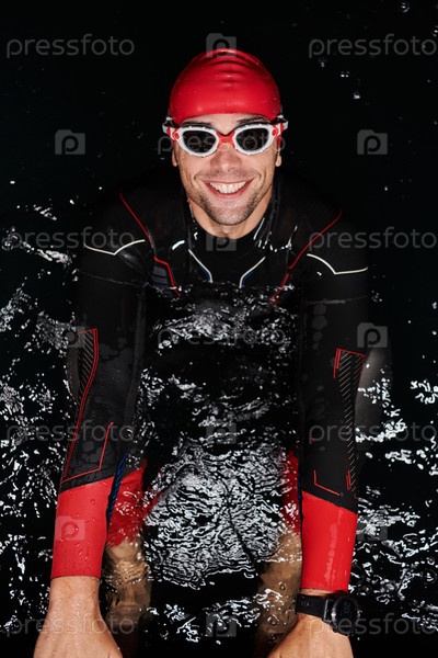 Настоящий пловец-триатлет, отдыхающий во время тяжелой тренировки ночью