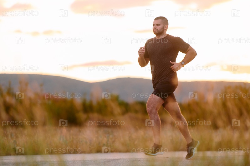 Спортсмен бегает под солнцем, готовя свое тело к экстремальным жизненным испытаниям