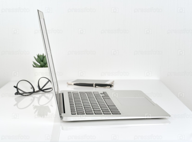 Рабочее пространство или офисный стол, концепция учебы, фон белой стены