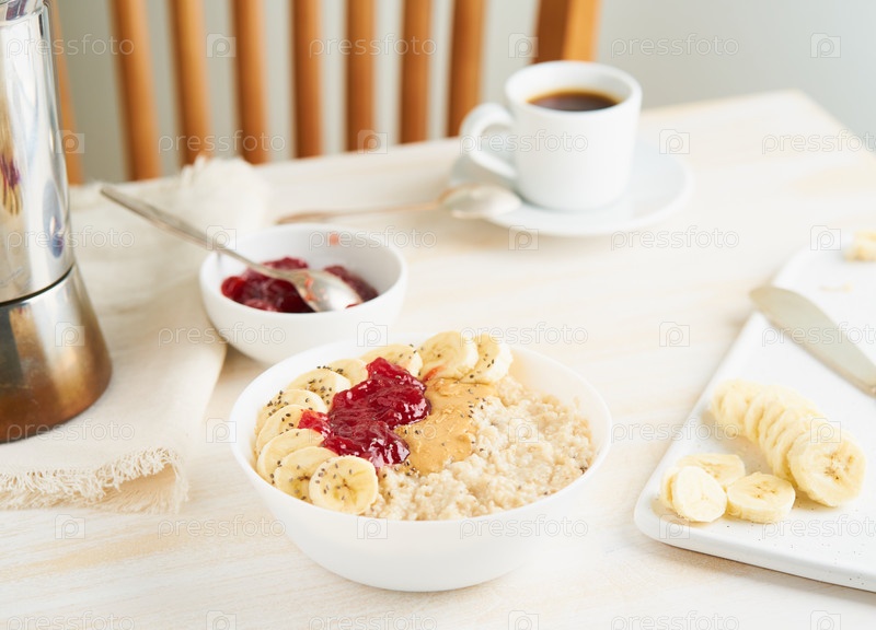 Овсянка, большая миска вкусной здоровой каши на завтрак, утренний обед