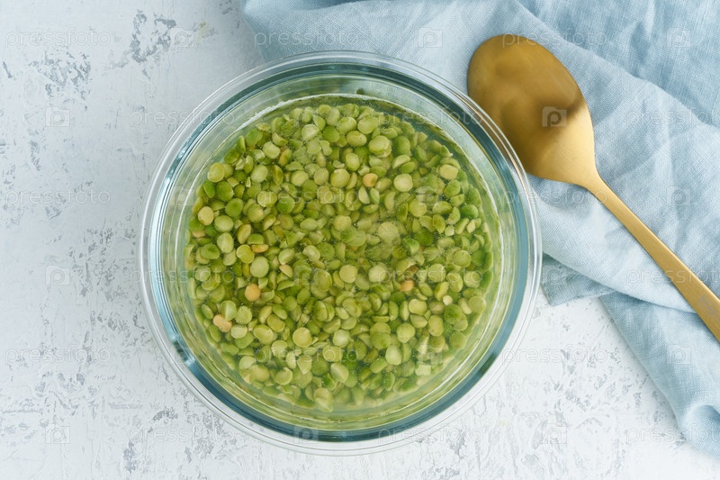 Замачивание крупы зеленого горошка в воде для ферментации крупы и нейтрализации фитиновой кислоты