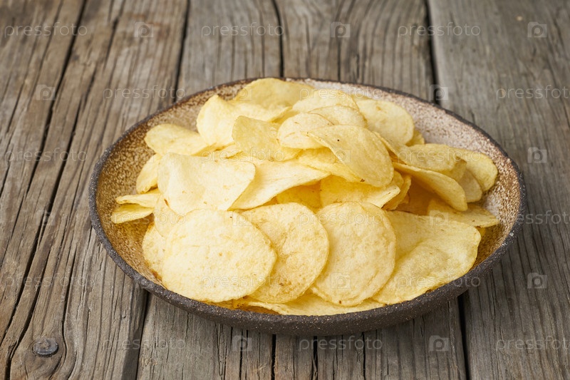 Хрустящая корочка в миске, деревянный фон, крупный план