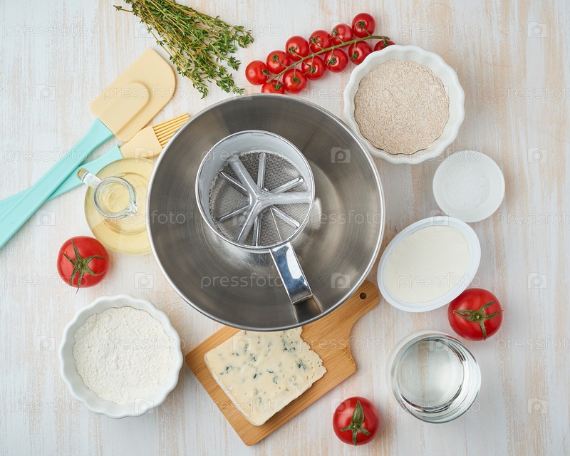 Пошаговый рецепт. Домашняя галета с овощами. Вид сверху, белый деревянный стол