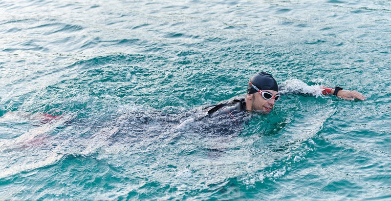 Профессиональный триатлонист с непоколебимой преданностью тренируется перед предстоящими соревнованиями на озере, излучая чувство атлетизма и глубокое стремление к совершенству