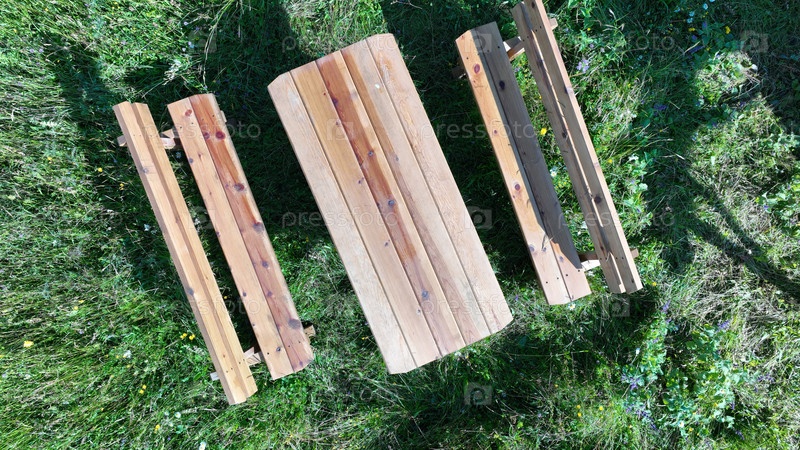 Деревенский деревянный стол для пикника на заднем дворе, вид сверху