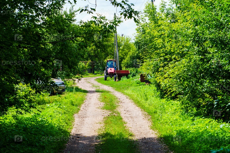 Сельский пейзаж. Трактор. Поселок Красная Заря. Орловская область