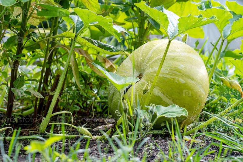 Большая тыква оттает на грядке. Урожай, здоровое питание
