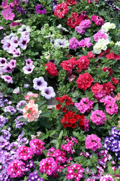 Продажа цветущих растений - петунии, калибрахоа, вербены на выставке-ярмарке